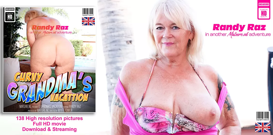 Пожилая блондинка Рэнди Раз раздевается догола, чтобы подрочить
