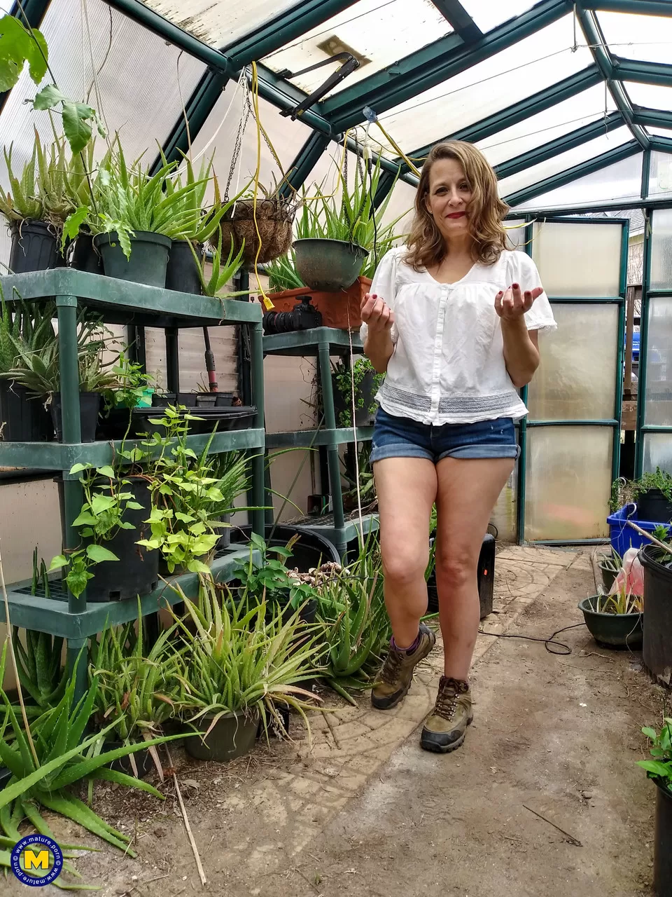 Пожилая любительница вставляет в свою бритую киску насадку для жарки индейки, полную спермы