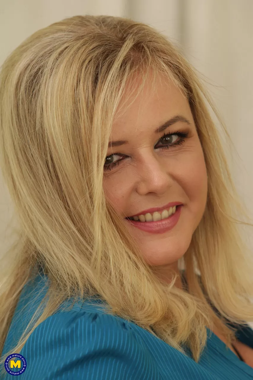 Полная домохозяйка играет со своей киской после раздевания до чулок
