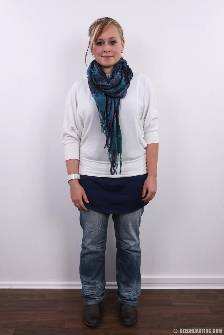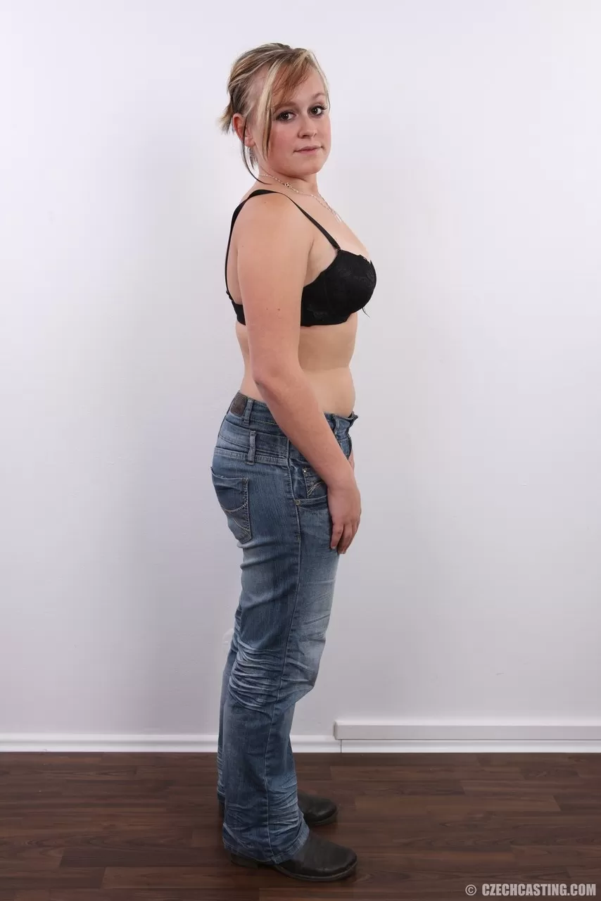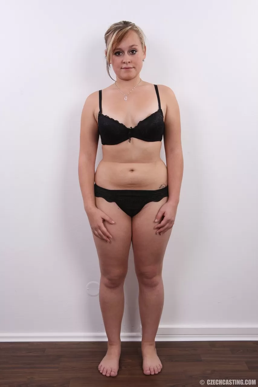 Пухленькая любительница стоит обнаженная после того, как сняла с себя одежду