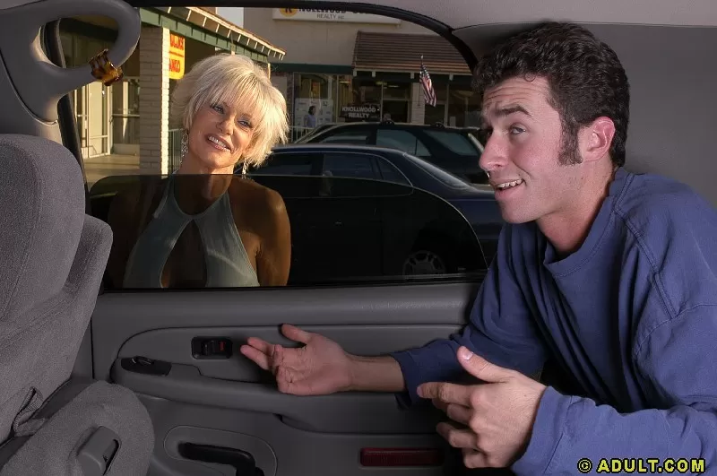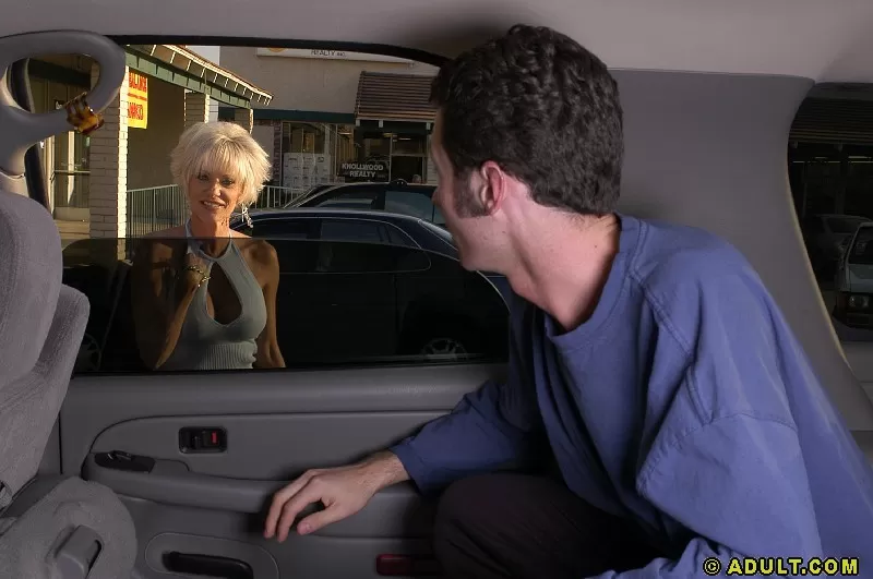 Распутная зрелая блондинка садится на молодой мясистый шест в машине