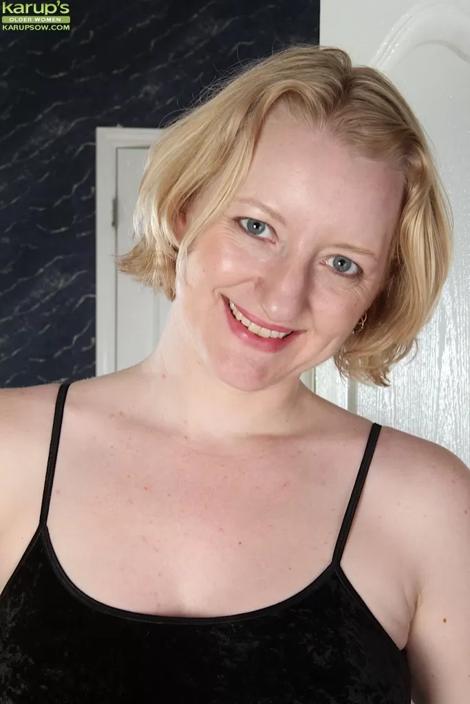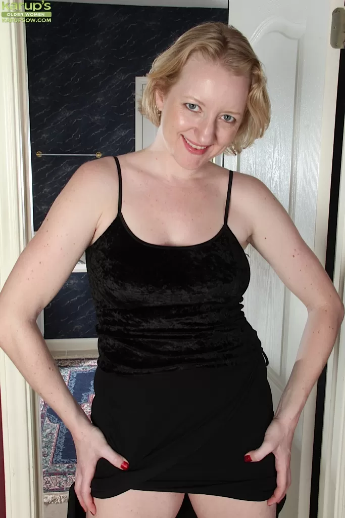 Русская жена Аня Волков хватает свою голую задницу и раздвигает ее пизду красными ногтями