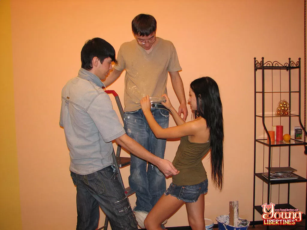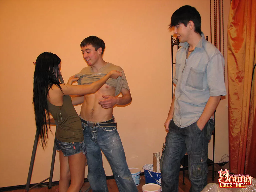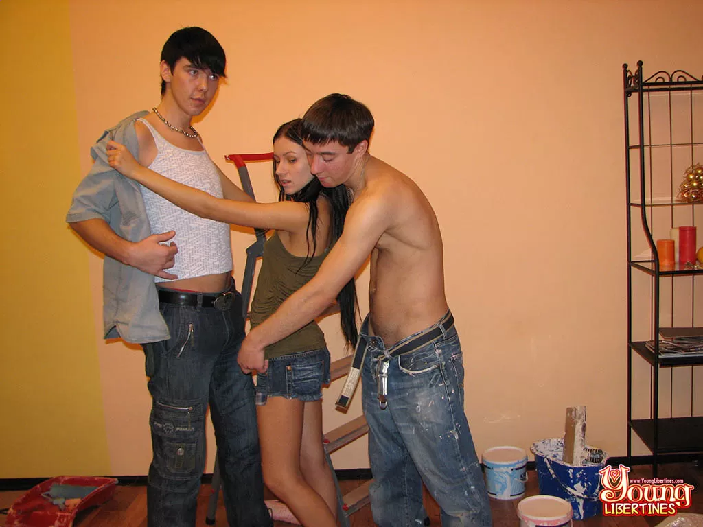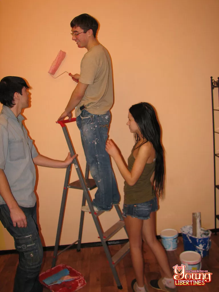 Сеанс покраски дома приводит к ММФ сексу для этих возбужденных подростков