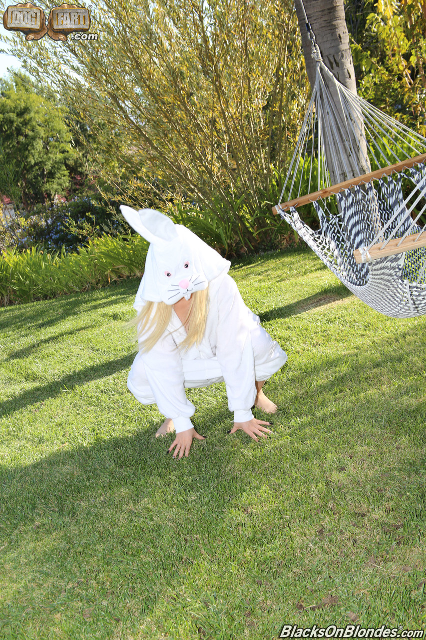 Сексуальная белокурая шлюха Кэгни Линн Картер играет в fuck bunny в межрасовой групповухе
