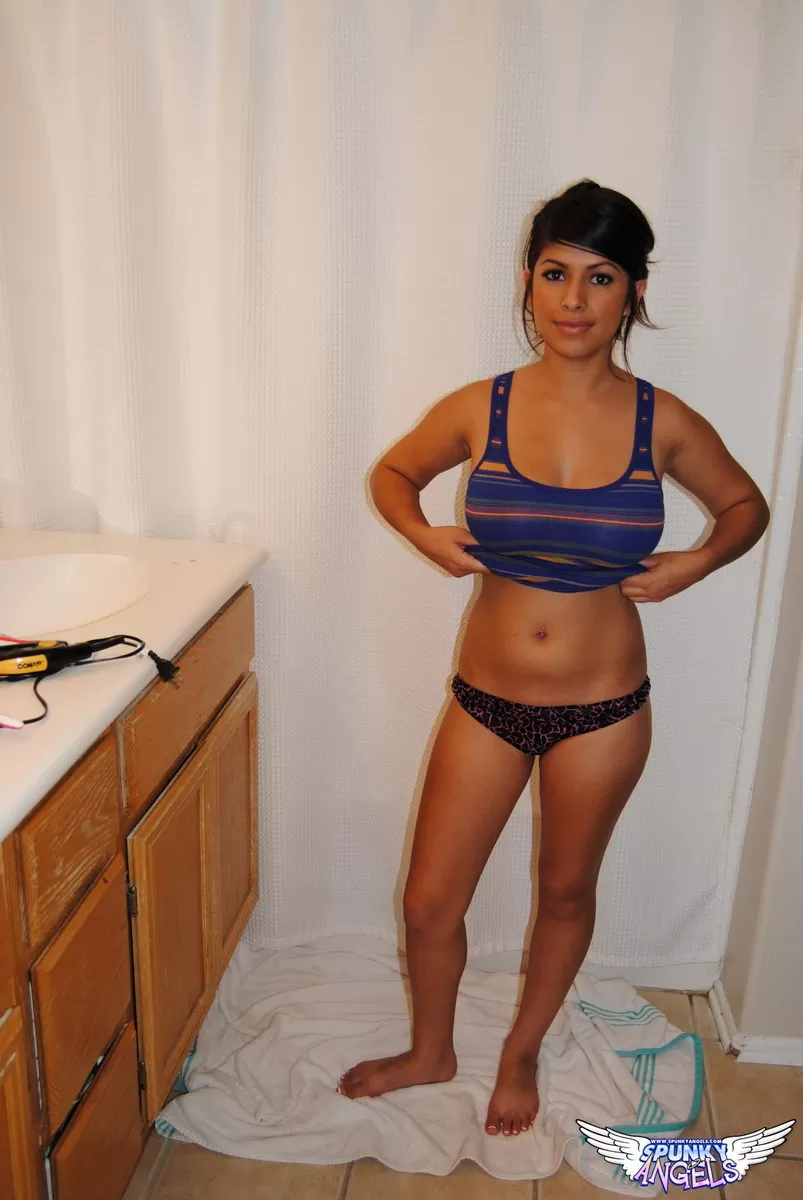 Симпатичная брюнетка Лейла Роуз раздевается, чтобы показать большие сиськи и упругую попку в ванной