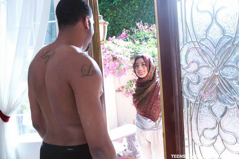 Симпатичная молоденькая Надя Алли сосет большой член во время мастурбации и межрасового траха раком