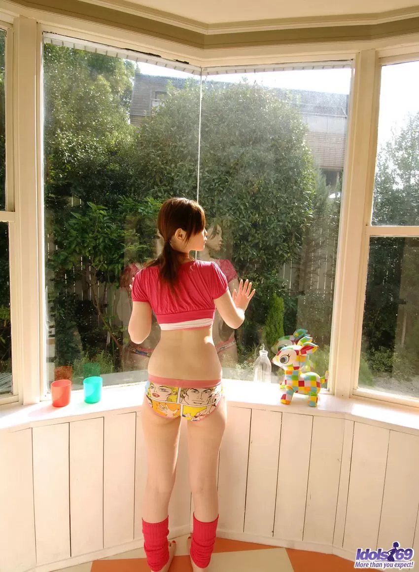 Симпатичная японская девушка Нами Огава демонстрирует трусики под юбкой снаружи, прежде чем раздеться