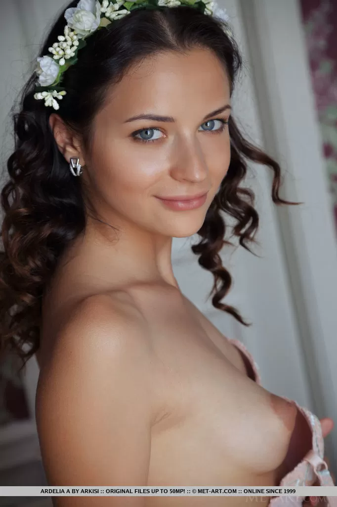 Сладкая молоденькая Арделия А в хлопчатобумажных трусиках показывает маленькие сиськи и голую пизду крупным планом