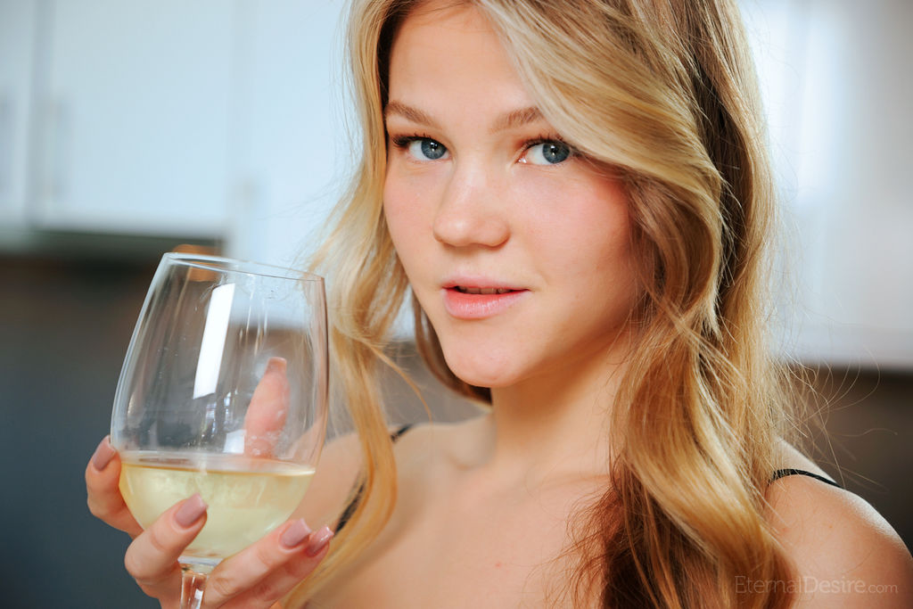 Сладкая молоденькая Валерия Минт мастурбирует в сетчатых чулках после того, как выпила вина
