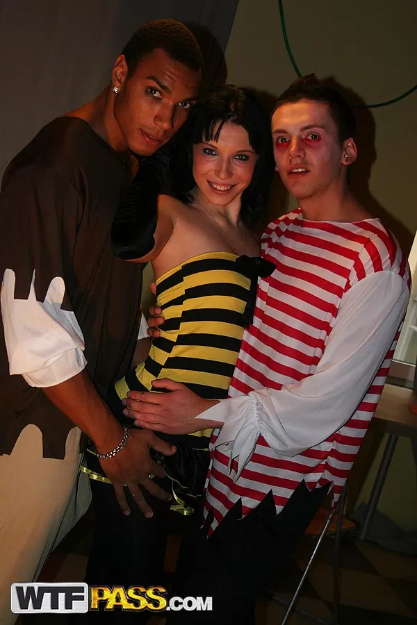 Темноволосая девушка Лина получает двойной трах во время групповухи