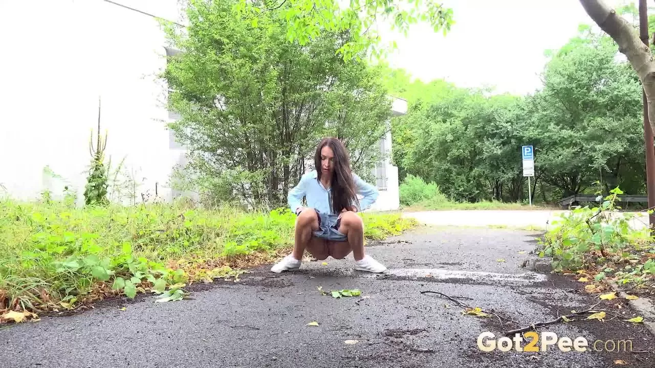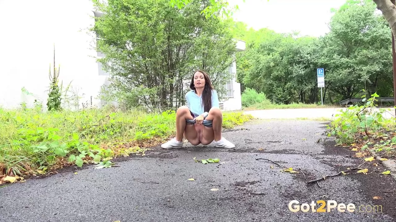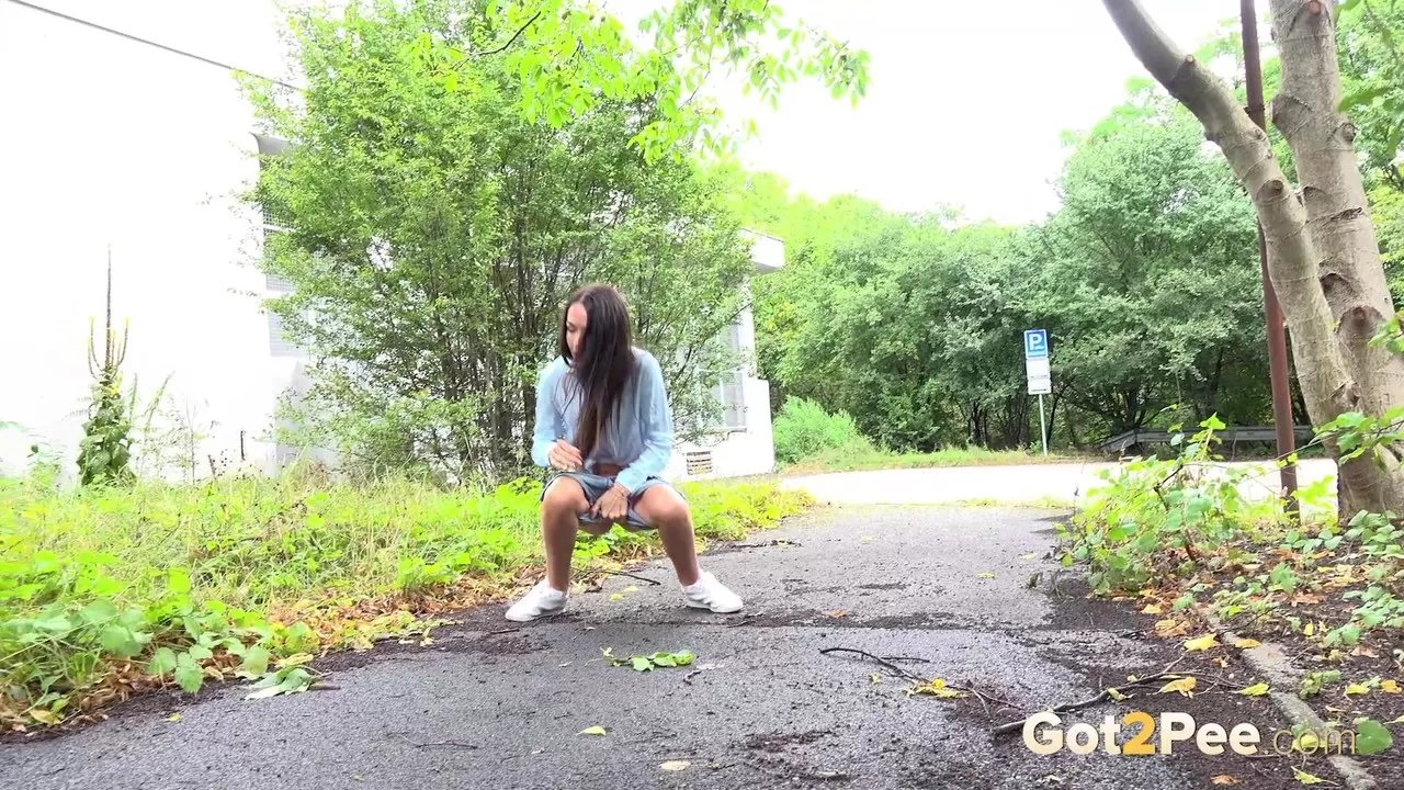 Темноволосой Мистике нужно пописать, находясь в пригороде