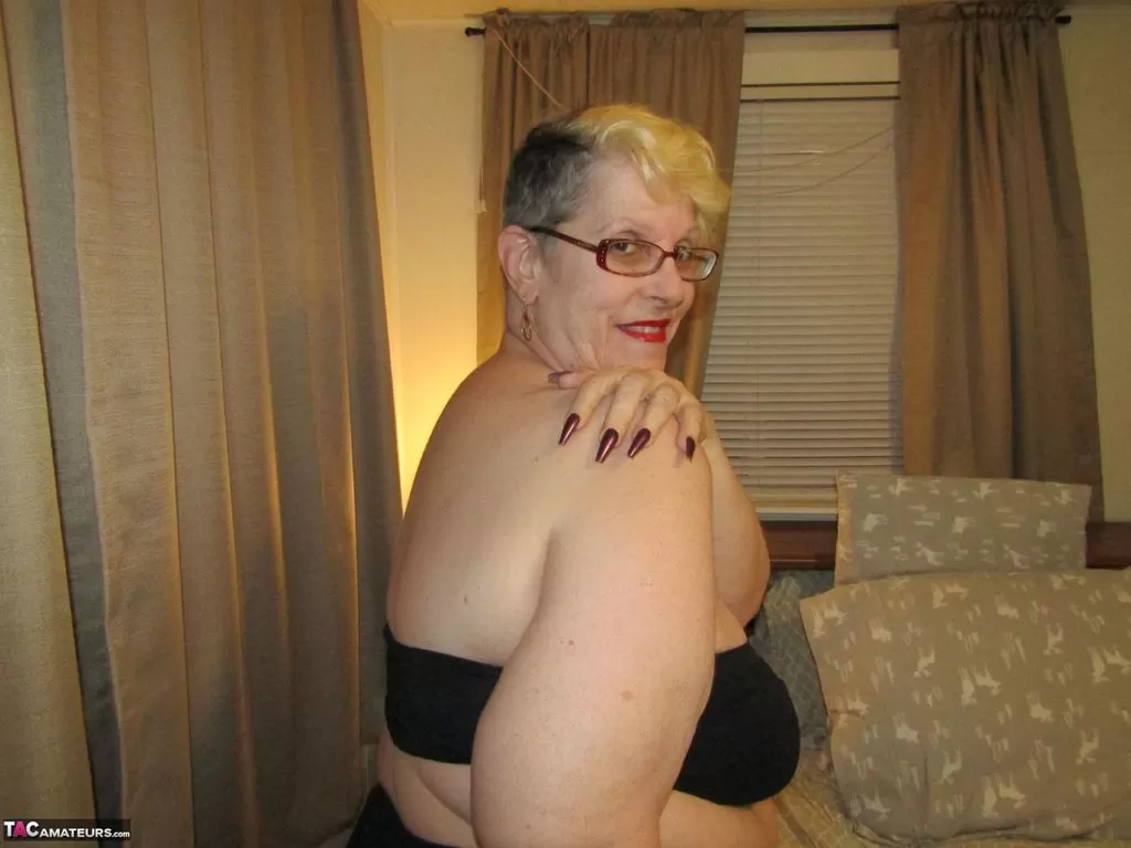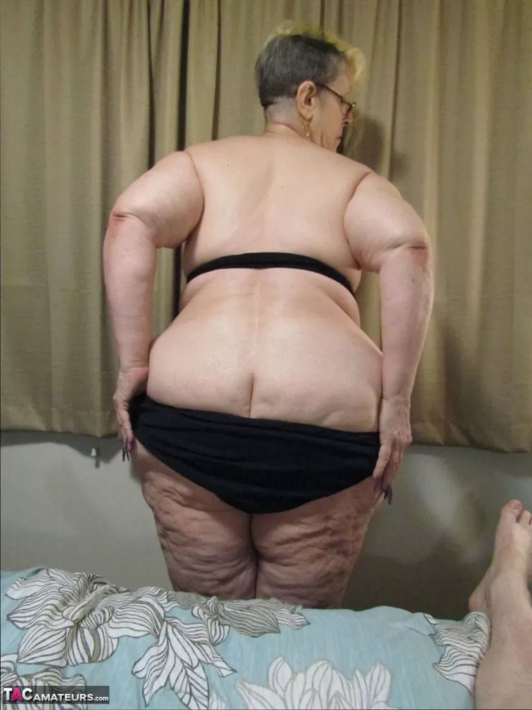 Толстая бабуля Банни Грэм сосет член и хватает свою огромную задницу перед сексом от первого лица на кровати