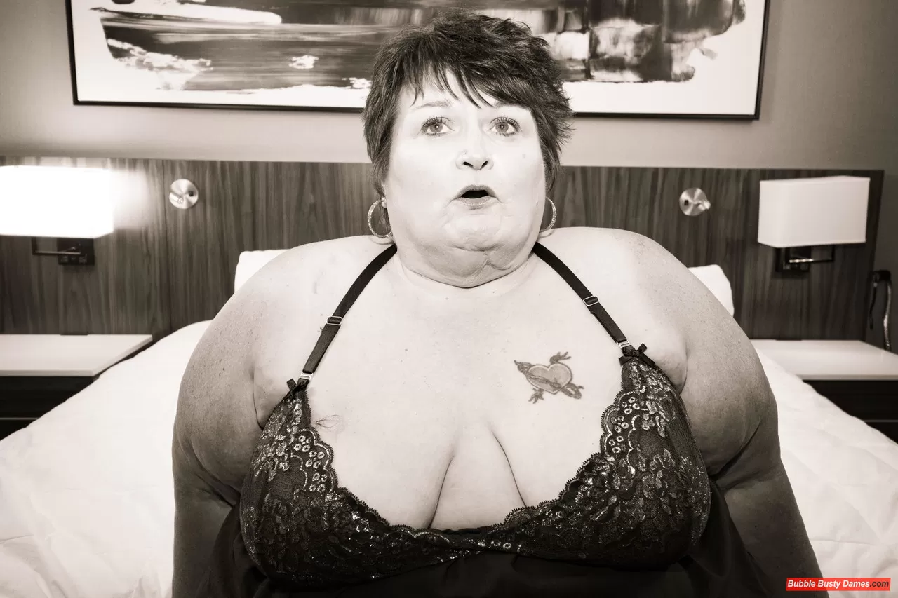 Тучная пожилая женщина мисс Дерзкая Чистюля выставляет свою массивную задницу на всеобщее обозрение