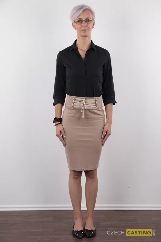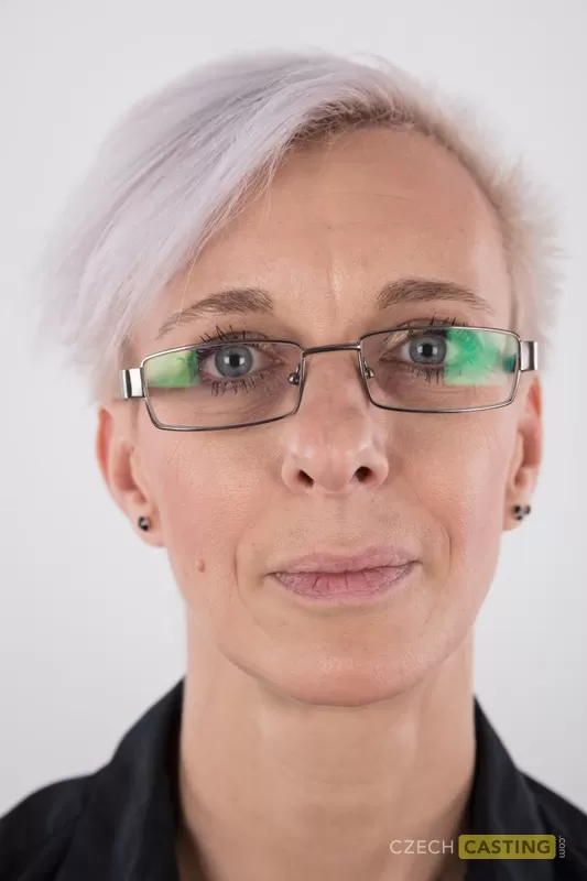 Высокая леди Мартина не снимает очков, полностью обнажая свою стройную фигуру