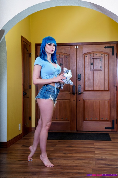 Возбужденная молоденькая Джуэлз Блю соблазняет своего сводного брата, пока он разговаривает по телефону