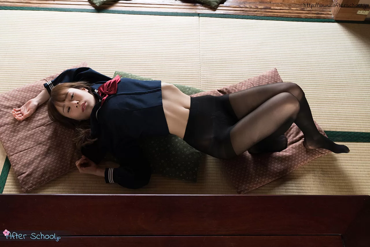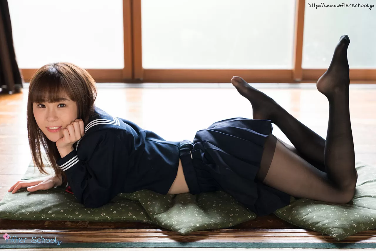 Японская студентка освобождает свое стройное тело от школьной формы на подушке