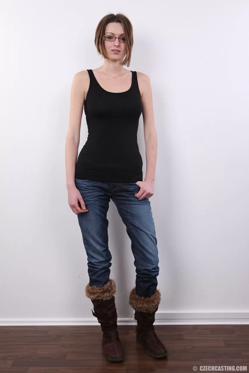 Занудная девчонка Маркета впервые снимает с себя одежду, кроме очков