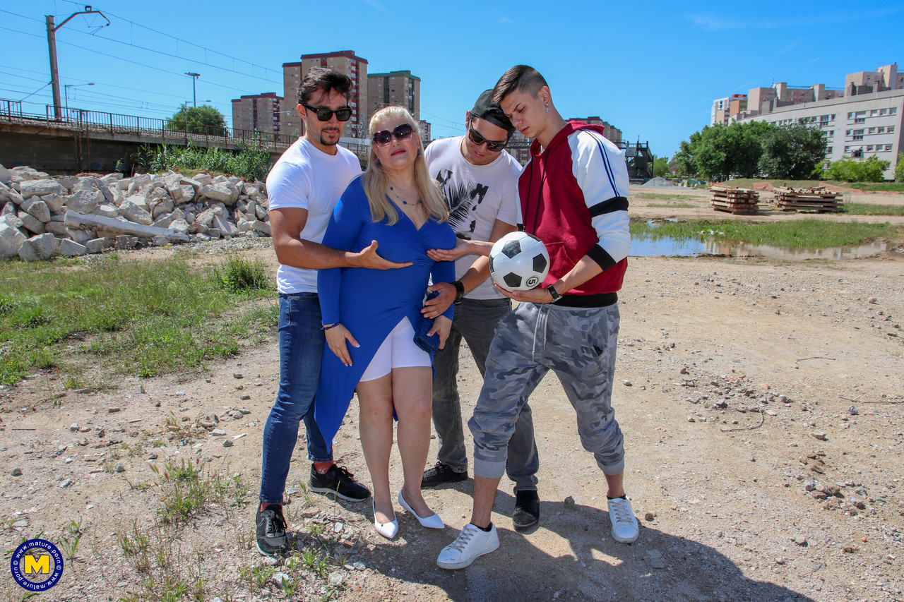 Зрелая любительница с большой грудью Муса Либертина трахается с тремя парнями помоложе
